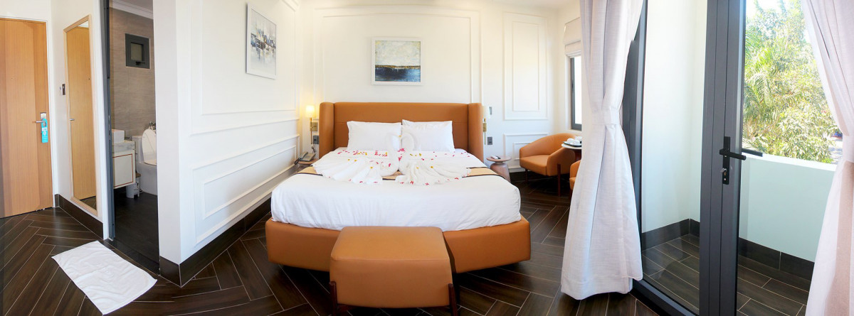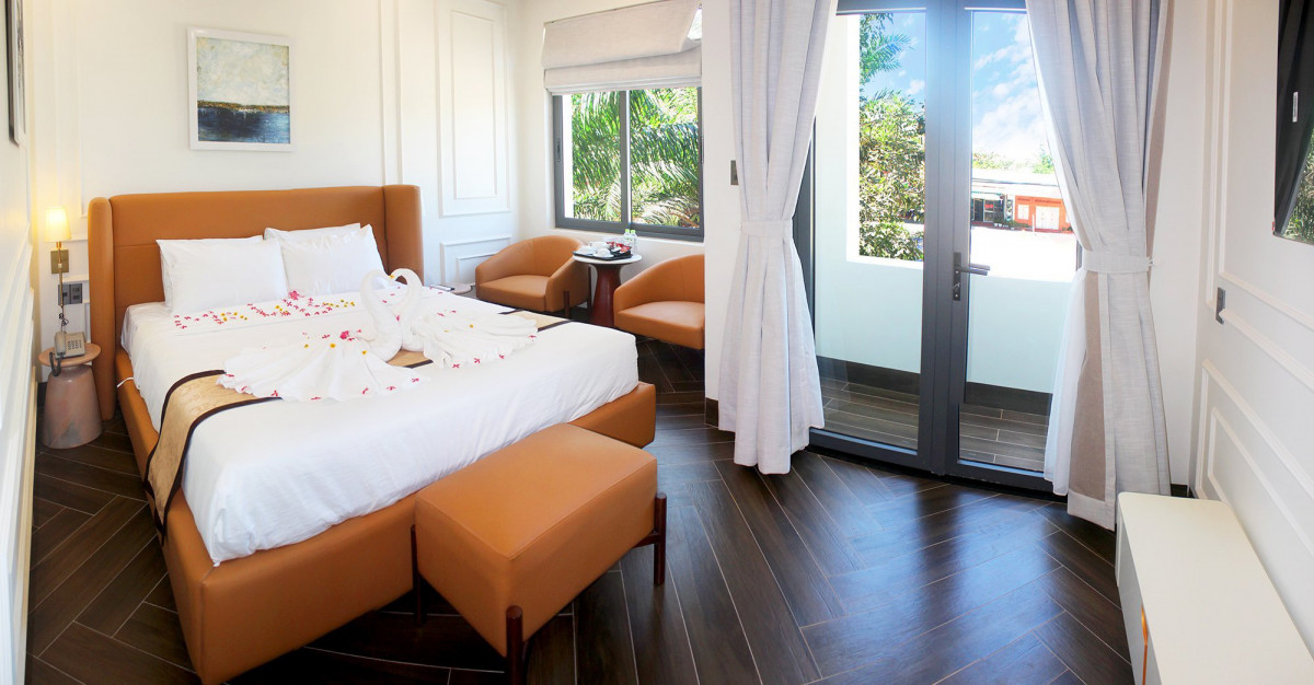 на побережье, в 2 км от центра города Муйне, в 25 км от столицы провинции Бинь Туан города Фан Тьет, в 30 км от аэропорта Фан Тьет и в 214 км от Международного аэропорта Таншоннят города Хошимин.